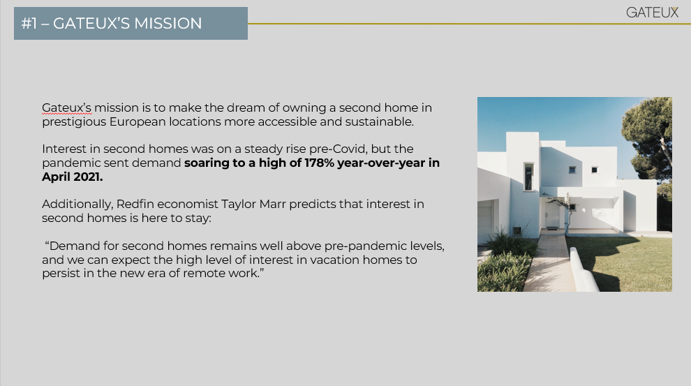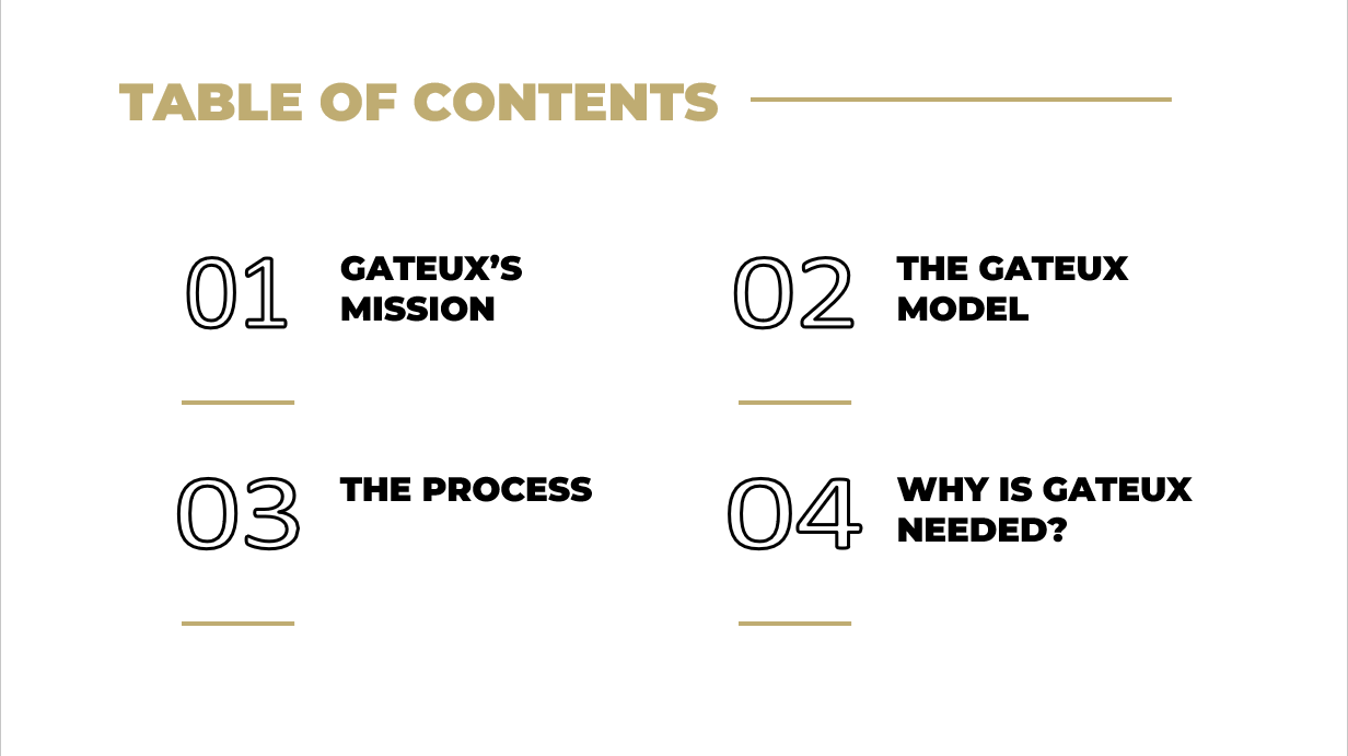 Gateux had a meeting with a Vc in two days before they reached out to us to make the presentation, we had to make it in one day and deliver it. We created a clean and modern presentation that helps to better read the presented content.
